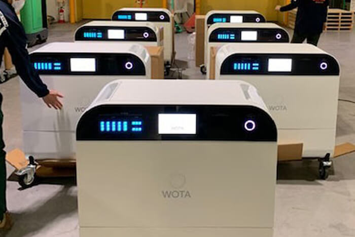 水循環型シャワー「WOTA BOX」と水循環型手洗いスタンド「WOSH」は、災害時の生活用水確保のため、これまでに全国150以上の自治体に導入されています。
